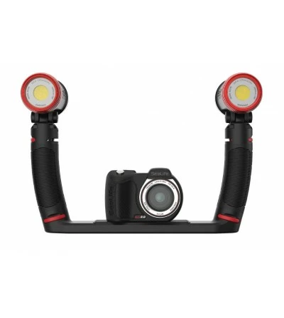 Modulable grâce aux nombreux accessoires SeaLife (une ou deux lampes de plongée pour photo/vidéo Sea Dragon, bonnettes)