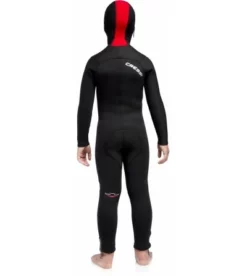 Récemment modifiée techniquement et esthétiquement. Classique combinaison monopièce pour immersions en eaux tempérées, elle s’enfi le rapidement et facilement et est étudiée pour offrir une grande liberté de mouvements. Les jambes sont préformées pour faciliter la fl exion naturelle et typique des membres durant le palmage.