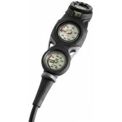 Console analogique avec manomètre profondimètre, complĂ©tĂ©s d’un compas compact spĂ©cifique.