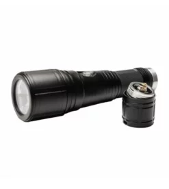 Lampe de plongée innovante et super lumineuse avec une focalisation variable à partir d’un spot de 5 ° et jusqu’à un grand angle de 70 °, qui peut être facilement ajustée pendant la plongée à l’aide de la tête de lampe rotative. La lampe a un mono-LED moderne avec une puissance de puce de 2500 lumens et dispose de 2 niveaux de gradation (100% et 50%) et d’un mode de clignotement SOS. La puissante batterie lithium-ion permet des autonomies allant jusqu’à 3 heures. Grâce à la protection moderne contre la surchauffe, la lampe peut également être utilisée sans refroidissement par eau.