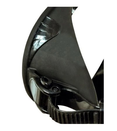 Inclinaison du masque prêt du front pour un meilleur champ visuel vers l’avant qui offre un plus grand confort en pêche sous-marine à l’indienne (déplacement en surface)