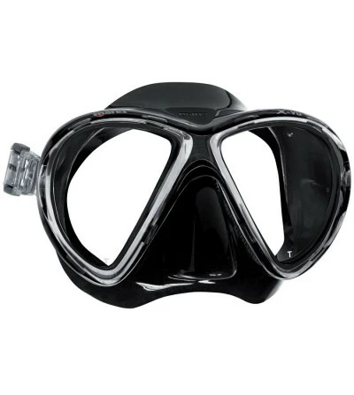 La partie avant de la jupe du X-vu possède une sĂ©rie d’« amortisseurs » horizontaux, destinĂ©s Ă absorber tout mouvement relatif entre le masque et le visage. Ils rĂ©duisent la sensation d’écrasement sur le vidage et le front, ce qui peut ĂŞtre particulièrement apprĂ©ciĂ© au cours des longues plongĂ©es.