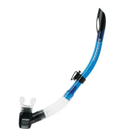 L’Escape est Ă©quipĂ© d’un dĂ©flecteur qui empĂŞche l’eau de pĂ©nĂ©trer dans le tuba. Le diamètre du tuba est large pour augmenter le confort respiratoire. Ce modèle comprend Ă©galement une purge basse, un embout de style dĂ©tendeur très confortable en bouche et un système d’attache rapide Ă la sangle du masque.